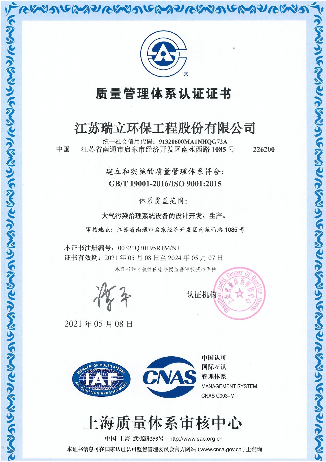江蘇瑞立環保工程股份有限公司(原江蘇瑞帆環保工程股份有限公司),成立于2017年3月,注冊資金2000萬元,坐落于江蘇省啟東經濟開發區南苑西路1085號,為省高新技術企業、省民營科技企業、省科技型中小企業。公司是專業從事大氣污染治理設備設計、研發、生產、安裝、銷售、服務于一體的新型環保企業。是由江蘇瑞帆環保裝備股份有限公司(瑞帆環保)和自然人共同發起投資成立的股份有限公司,其主營環境污染治理工程、機電設備安裝工程、土壤修復工程施工;制造、銷售大氣污染協同治理系統設備、高爐煤氣干法除塵設備、焦爐煤氣凈化處理設備、大型耐高溫、耐酸袋式除塵設備、工業鍋爐煙氣脫硫脫硝設備、垃圾焚燒處理設備;環境污染治理及監測技術的研發、技術咨詢、技術服務;合同能源管理。公司產品主要用于冶金 、電力 、建材 、化工 、垃圾焚燒等行業的煙氣治理;公司還積極開拓服務領域及海外市場,分別成立了鄆城縣綠維、曹縣蔚藍、南安市瑞立、莆田市瑞立、漳浦縣瑞立、淮安市瑞立、慶陽蔚藍等7家全資子公司承擔福建圣元環保股份有限公司的7家垃圾焚燒發電子公司的污染治理第三方運營服務的業務,公司部...